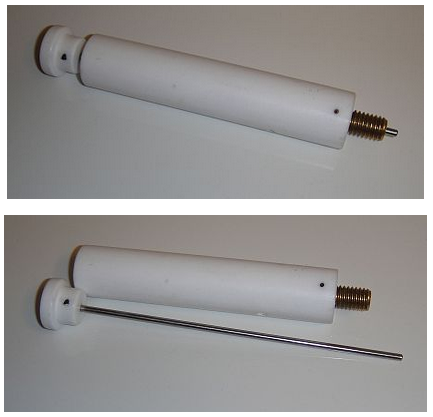 This this tool is used to separate pucks or uni-pucks to load them into the ALS-robot dewar. It consists of two pieces: a Teflon tube part and a metal rod part as shown below.