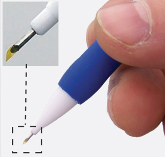 Each tool is mounted on a 0.025"/ 0.64 mm diameter nonmagnetic solid stainless steel rod. Hold them in a standard 0.7 mm mechanical pencil (included with each kit), or in a micromanipulator.