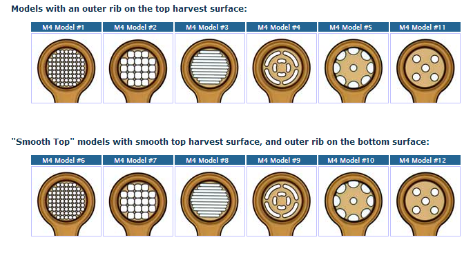 Each design is currently available in two versions: one with a smooth top surface and the 10 micron thick outer "rib" on the bottom surface, and one with the out rib projecting out on the upper surface.