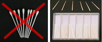 ![]() | 4. DO:Remove stubborn residues using a paper wick. DO NOT: use cotton or foam-tipped swabs. Swabs can catch and tear the polymer. |